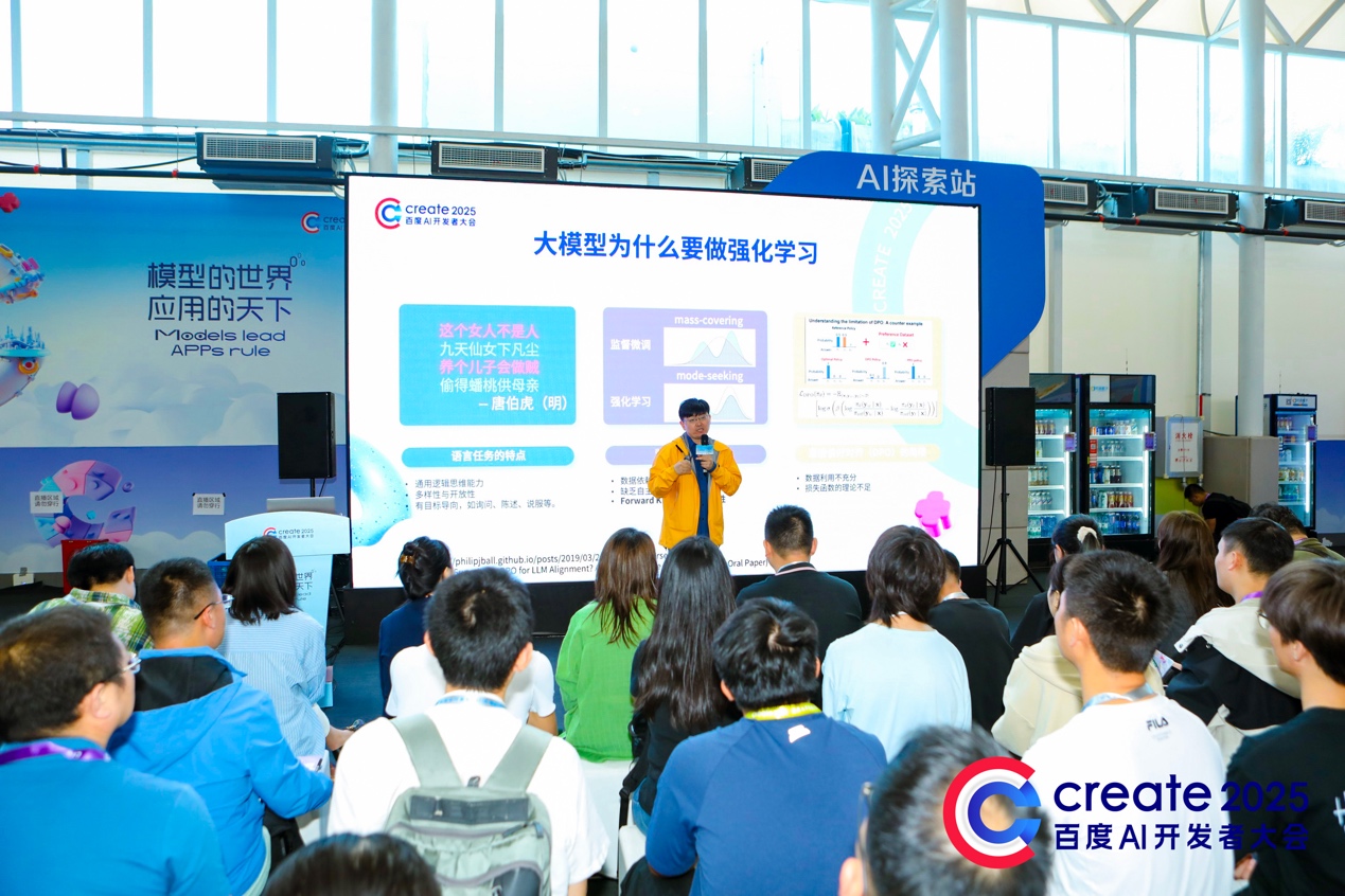 4月25日,将来,正在Create展区现场开讲,文心快码Baidu Comate架构师牛万鹏为大师分享若何用从动编程智能体Zulu实现从需求到代码的端到端生成。Apollo平台高级产物司理苏菲菲分享了高机能、低成本的从动驾驶处理方案,Create线下AI公开课通过度的内容笼盖和丰硕的进修交换机遇,们连系本身实践经验和行业洞见,并聚焦AI正在金融、医疗、教育等行业的落地使用,“之前设想的一些AI+酒业的立异营销方案,当全国战书,百度智能云大模子办事资深手艺专家杨涛展现了低成本复刻顶尖思虑模子的全流程。分享了GRPO算法锻炼提拔模子数学解题能力的全过程。”